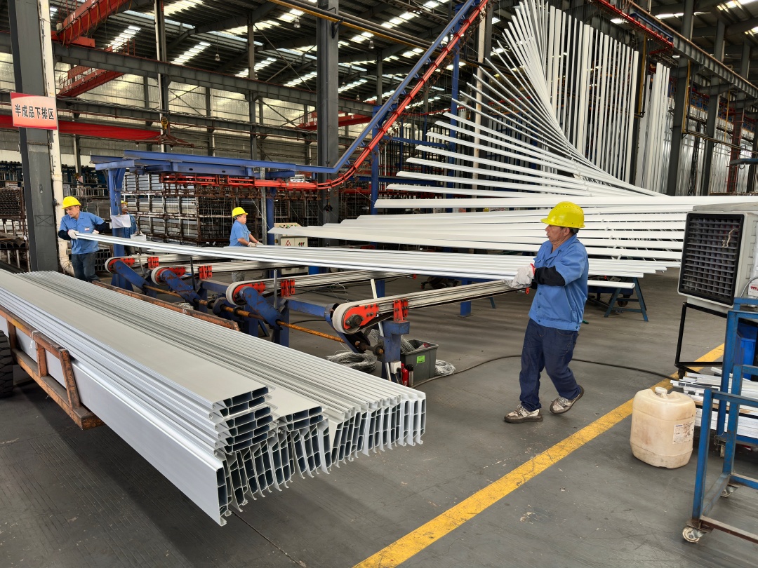 The company possesses a complete industrial chain, covering alloy research and development, mold design, aluminum rod casting, profile extrusion, surface treatment, and precision deep processing. It can stably produce 1xxx, 3xxx, 5xxx, and 6xxx series aluminum alloys. Its main products include base materials, anodized, electrophoresis, powder coating, wood grain transfer, PVDF (fluorocarbon) coating, and various industrial aluminum profiles, widely applied in building curtain walls, door and window systems, home decoration, transportation, industrial manufacturing, and electronic products.